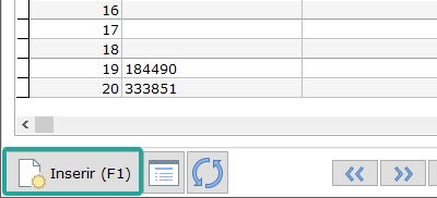 Clique no botão Inserir no canto inferior esquerdo para iniciar a inserção de um novo produto.